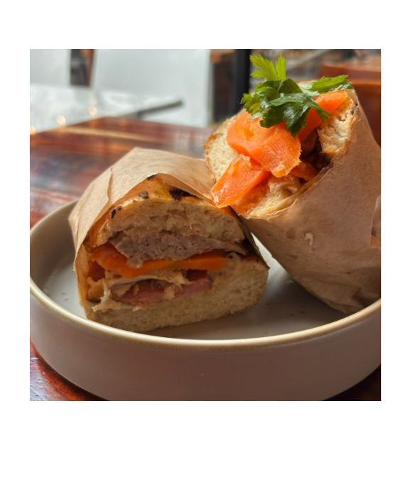 150gr de carne de res prime a la plancha, se acompaña de huevo estrellado con mayonesa de rábano, cebolla caramelizada, queso Monterrey, mostaza de miel y tocino.